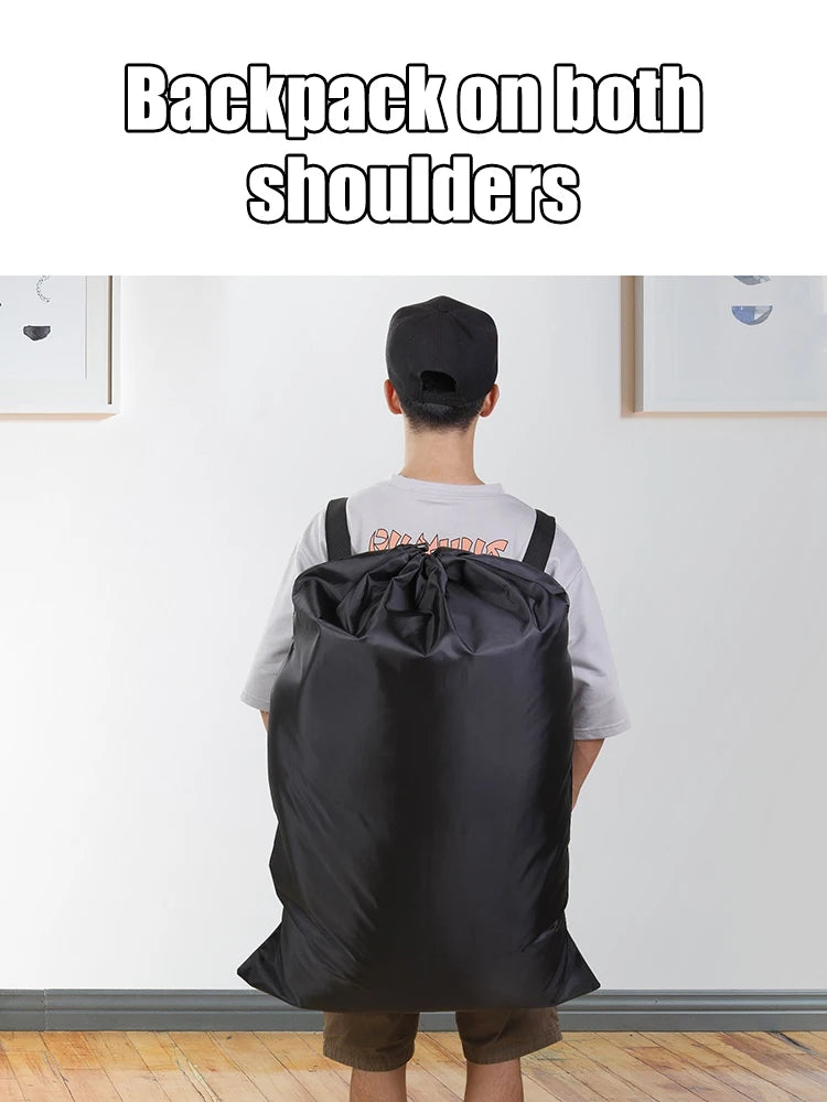 Whether you're heading to the dorm laundry room, hitting the gym, or traveling for the weekend, this foldable laundry backpack keeps dirty clothes contained and organized. The drawstring closure and backpack straps make carrying laundry effortless, while the foldable design saves space when not in use.