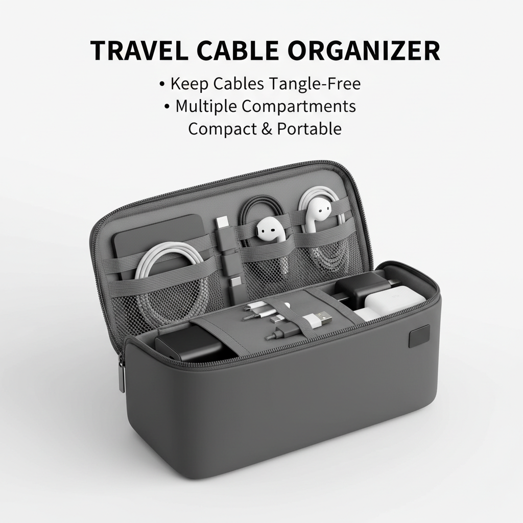 Say goodbye to tangled cables and scattered chargers. This compact travel cable organizer is designed to simplify your life, whether you're commuting to work, traveling across the country, or just keeping your desk tidy.